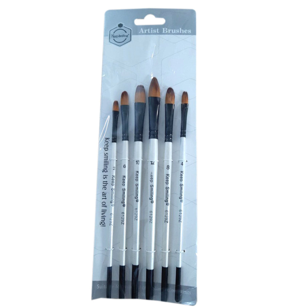 Enhance your painting skills with the Keep Smiling Filbert Paint Brush Pack of 6! Designed for smooth blending and precise strokes, these filbert brushes feature soft yet durable bristles that hold paint well and provide excellent coverage. The ergonomic wooden handles ensure a comfortable grip, making them perfect for acrylic, oil, and watercolor painting. Whether you're adding fine details or creating soft edges, this set is a must-have for artists of all levels.