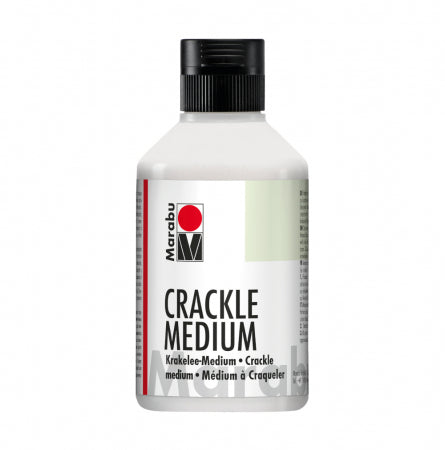 Achieve unexpected textures and finishes with the Marabu Crackle Medium. Suitable for use with different techniques, this medium creates a very interesting crackle effect. Using this medium is very simple and practical: first apply a paint layer and let it dry (with a hair dryer for example), then apply the medium evenly and let it dry (with a hair dryer for example), finally quickly apply another paint layer and see the cracks appear almost immediately, and let it dry for about 1 hour. The larger the layer, the more distinctive the crackles will be. The ink break direction has to do with the upper layer brush stroke direction.