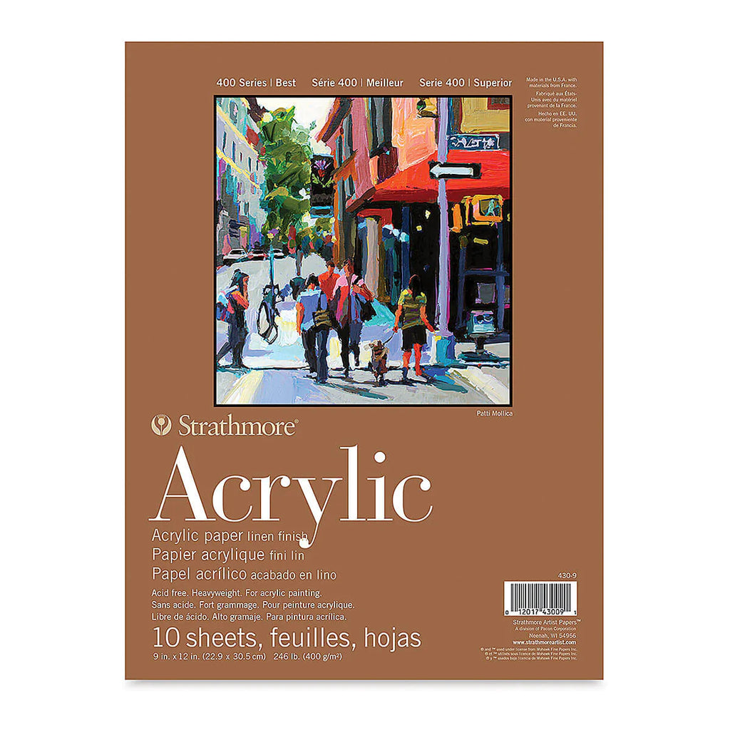 The Strathmore Series 400 Acrylic Pad Natural White 400gsm is specially designed for artists working with acrylics and other heavy-bodied paints. Its thick 400gsm heavyweight paper provides excellent durability and prevents warping, allowing multiple layers of paint without compromising texture. The natural white surface ensures true color vibrancy and smooth blending. Acid-free and archival quality, this pad preserves your artwork for years to come. Ideal for both beginners and professional painters, it offers a textured finish that supports a variety of techniques including washes, impasto, and glazing. The sturdy construction and high-quality paper make it a reliable choice for acrylic painting projects of all scales.